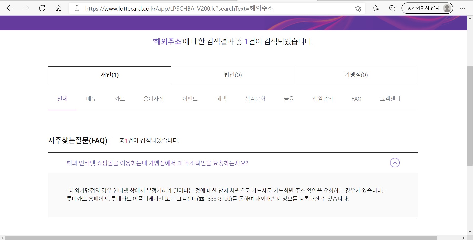그럼 우리는 그 카드회사를 찾아서 배대지 주소를 입력해주면 된다!