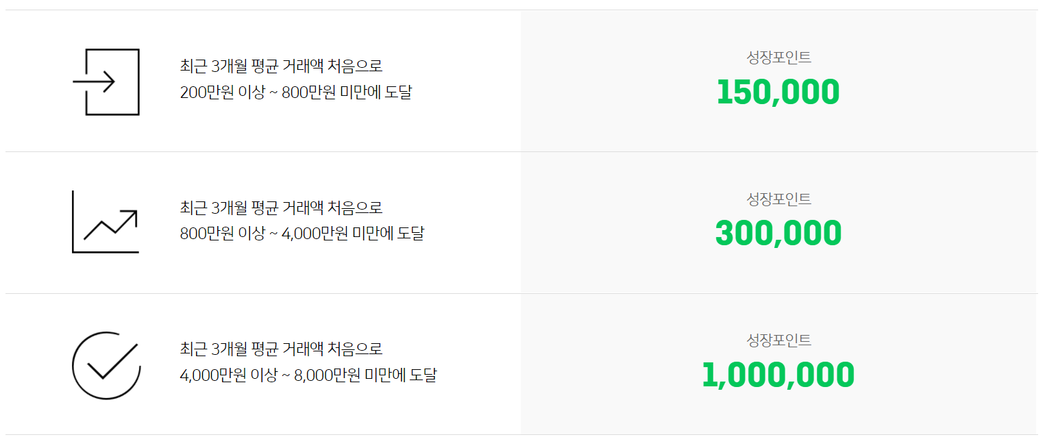 (와... 3단계는 월 평균 거래액이 4000만원이다.... 진짜 저걸 1년 미만 사업자가 받는다면 그사람은 정말 능력자...참고로 API로 가져가는 사업자는 제외이기 때문에 대기업의 스마트스토어는 제외될 것)