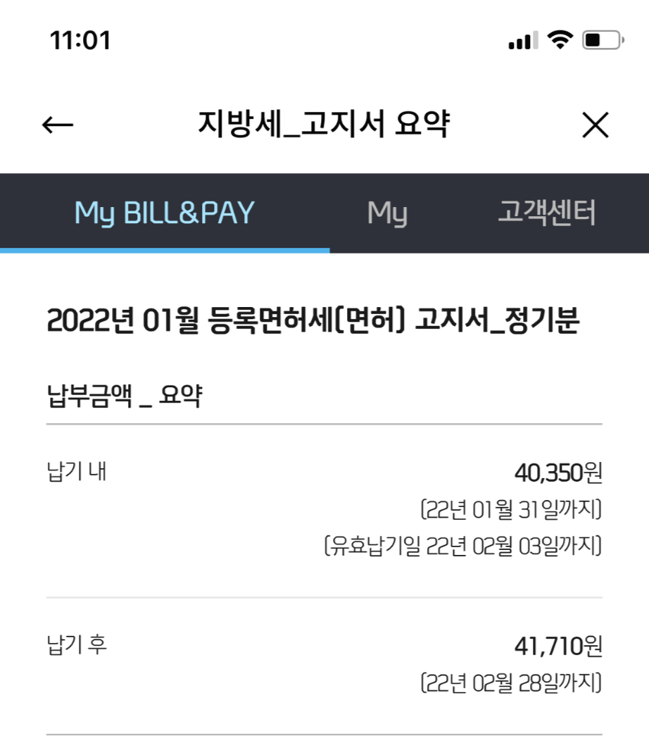 아래의 화면은 신한카드 My Bill에서 캡쳐해온 것인데, 네이버 전자고지서도 신청해놓아서 네이버 앱으로도 알람이 왔습니다.