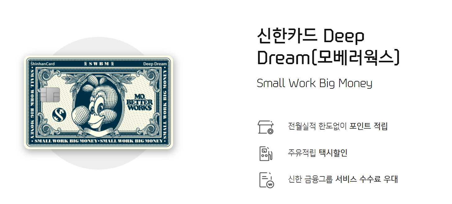 만약 딥드림 카드를 발급 예정이라면, 그냥 일반 딥드림 카드 말고 모베러 웍스 딥드림 카드로 발급받으세요.