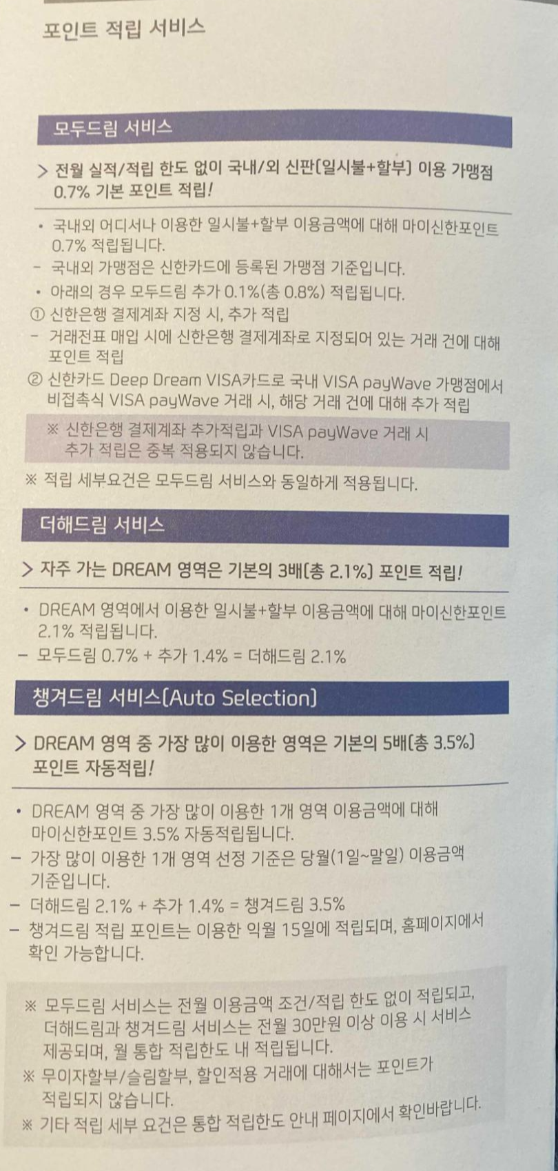 신한카드 딥드림 카드(Deep Dream)