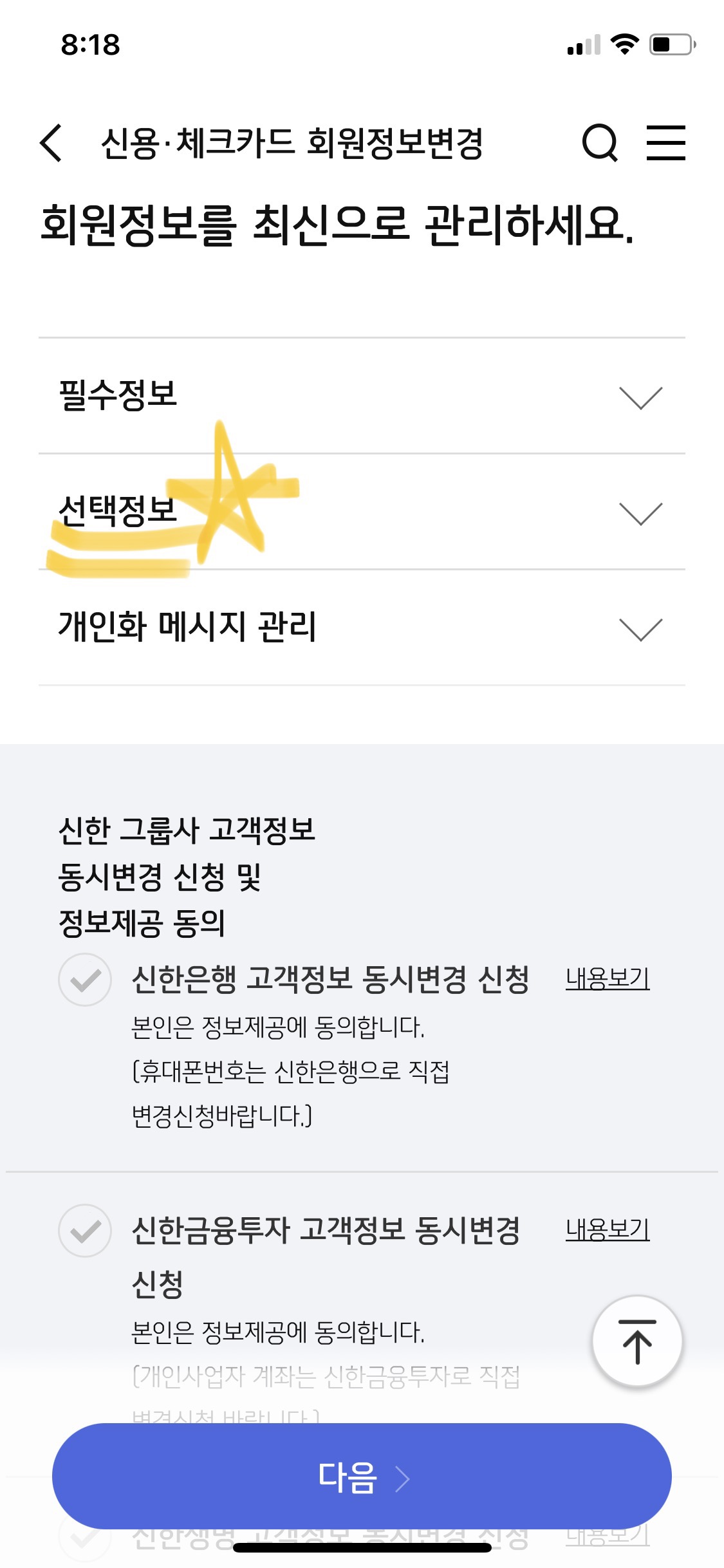 필수정보는 자신의 개인정보입니다. 자기 집 주소, 휴대폰 번호가 여기에 들어갑니다.