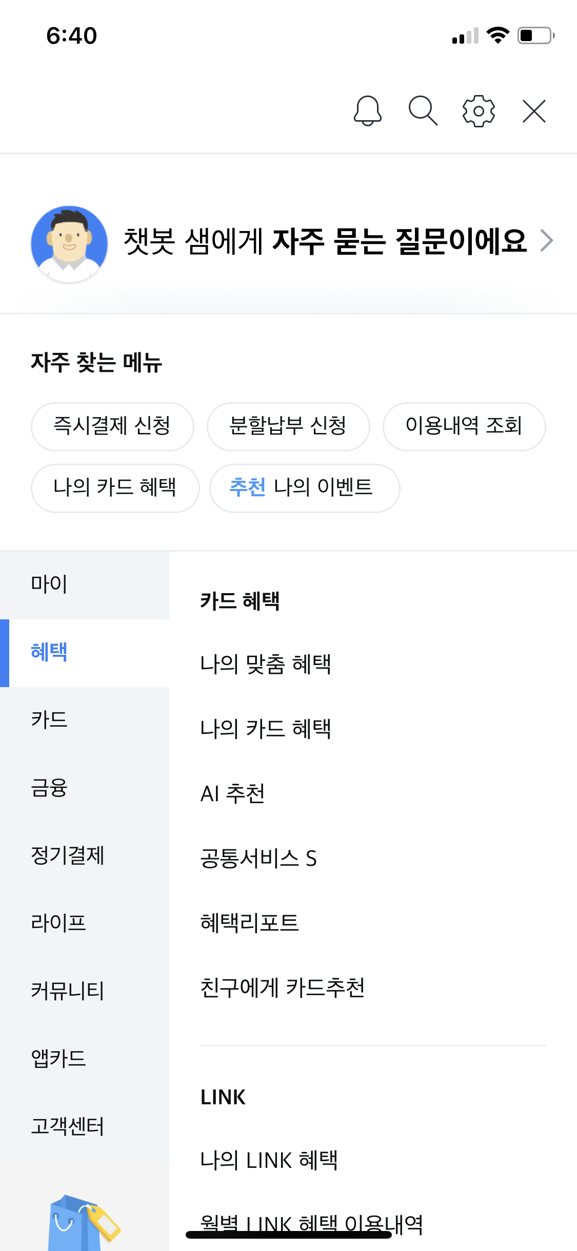 나의 혜택을 누르면 이제까지 내가 받은 혜택 금액 어쩌구 저쩌구가 다 뜨는데, 그 중에서