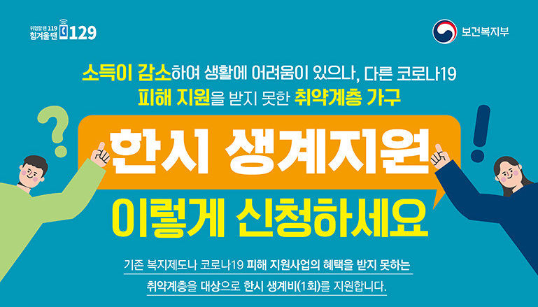 한시 생계지원을 위한 안내화면 입니다
