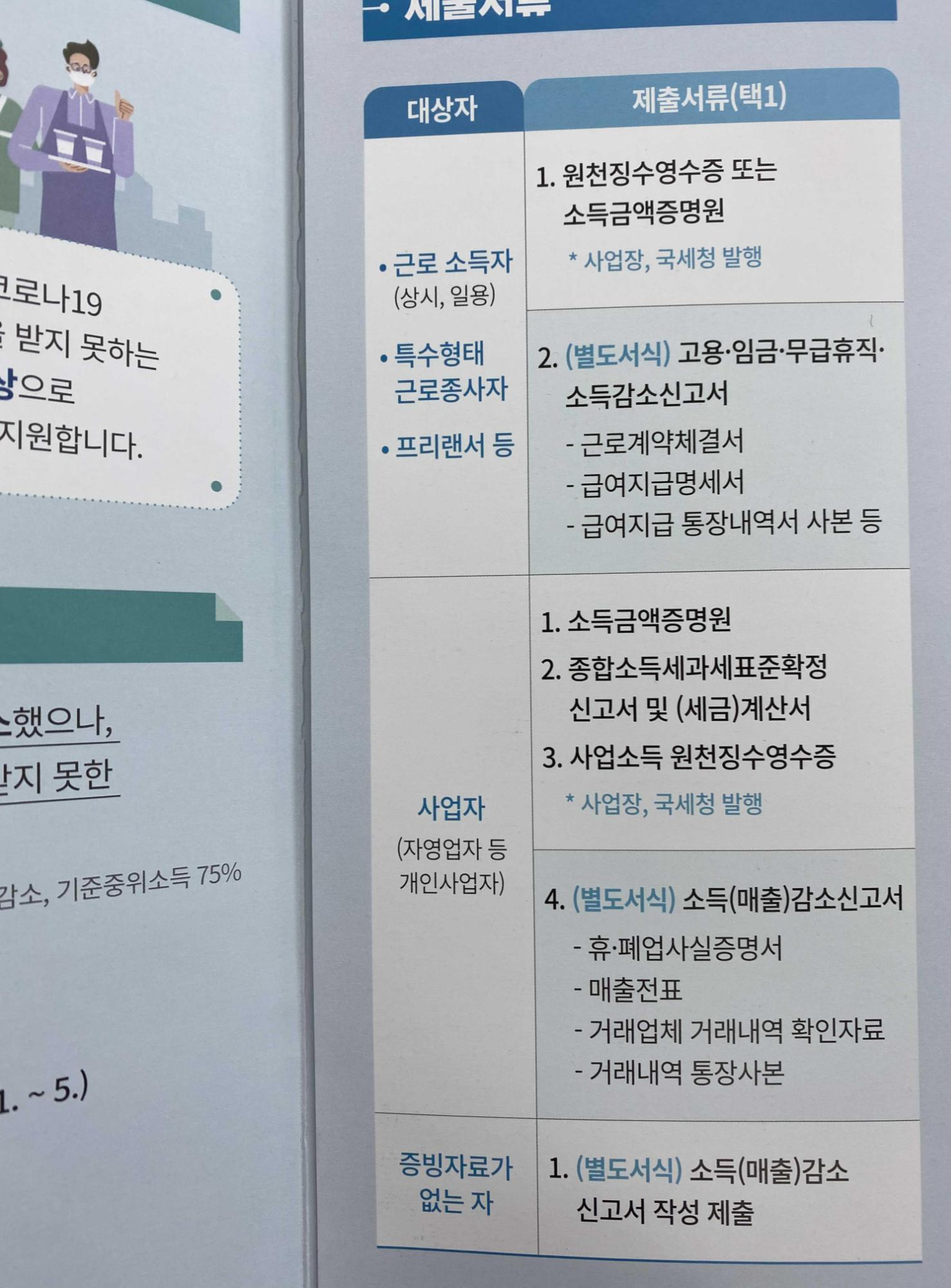 ◆만약, 현재 소득이 줄어들었다는 사실을 증빙할 수 없다면, 소득(매출)감소 신고서를 작성해 심사를 받아야 합니다.