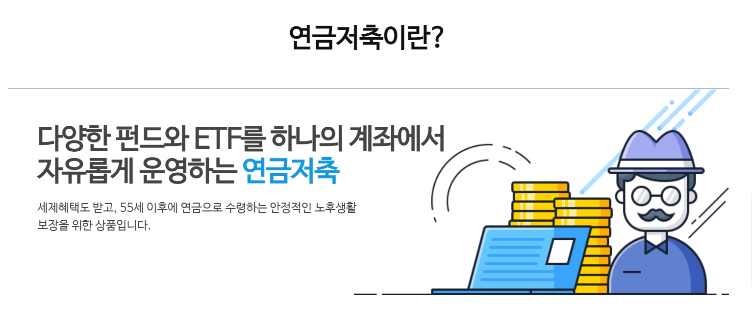 연금저축계좌는 어느 곳에서나 가능한데 그 중에서 이 내용을 잘 정리한 증권사 홈페이지가 있어서 소개한다.