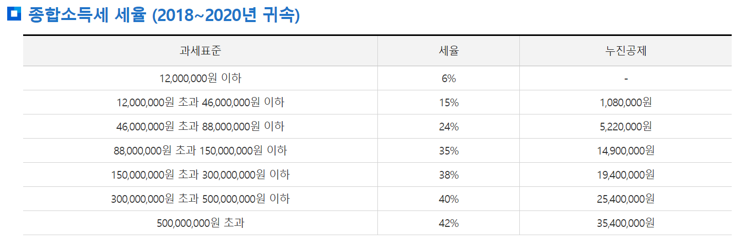 <참고할만한 종합소득세 구간별 세율>